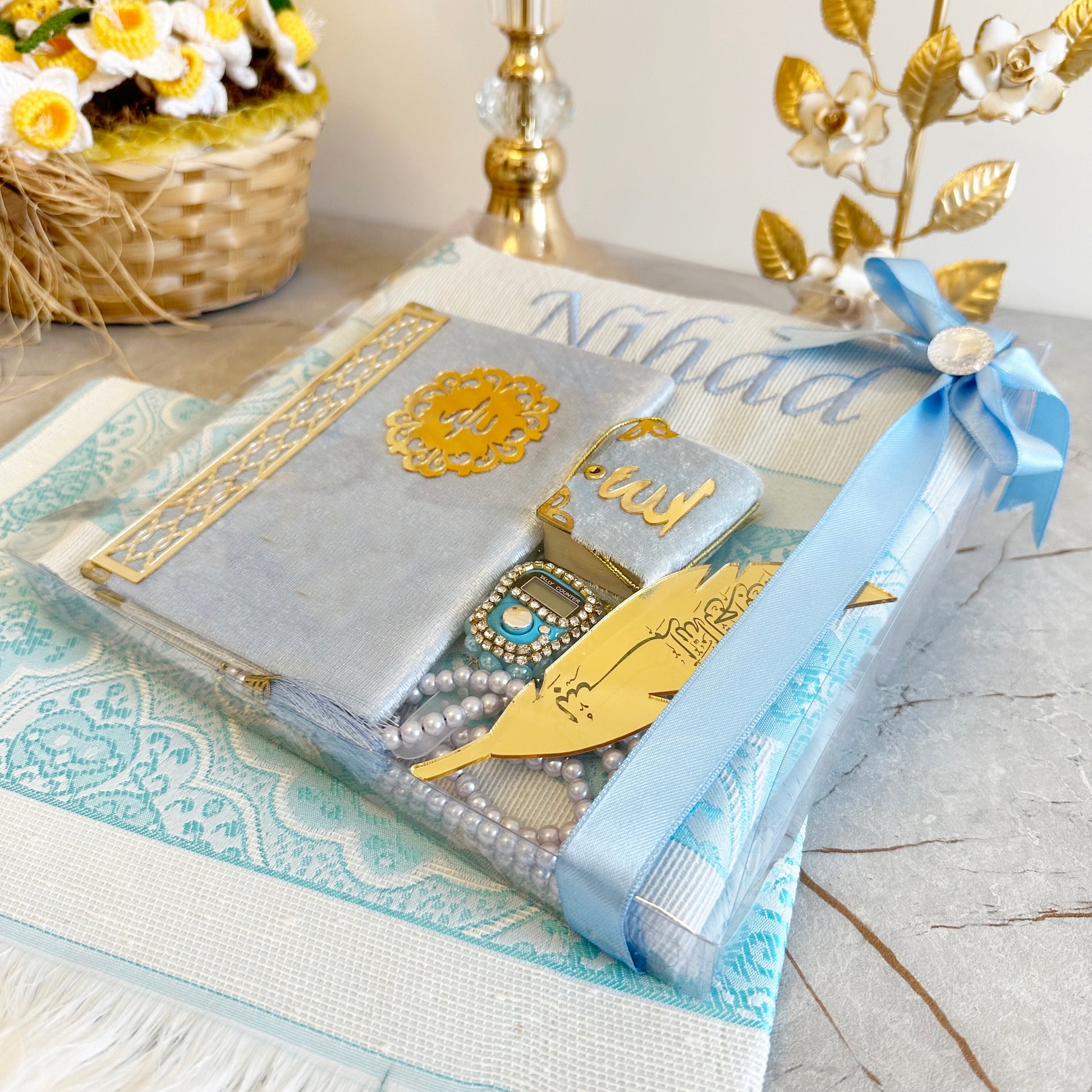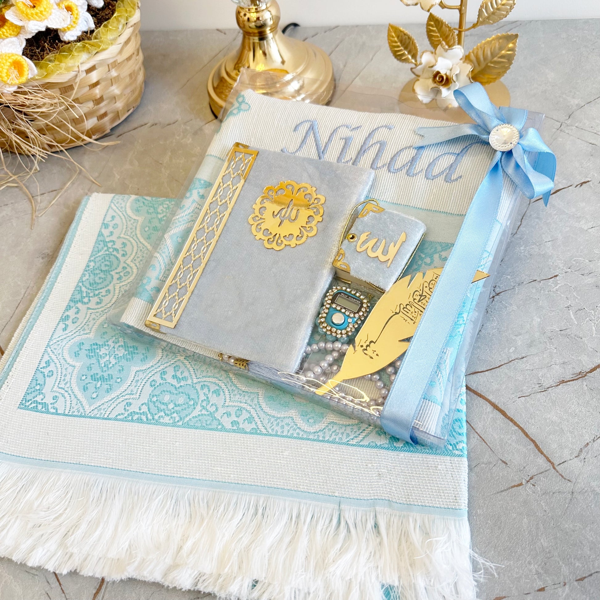 Hediyelik Lüks Seccade Seti Bebe Mavi